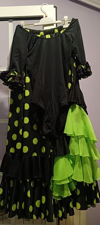 Flamenco. Color negro con bordados florales y múltiples abalorios. Apenas uso. Talla S. Cintura:36cm Largo 62cm Ancho: 42cm