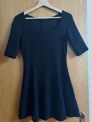 Precioso vestido negro de Bershka, ideal para cualquier ocasión. Es de corte skater, entallado en la cintura y acampanado en la falda. - Manga tres cuartos. - Escote redondo. - Tejido suave y ligero. Si tienes cualquier duda, escríbeme 😊