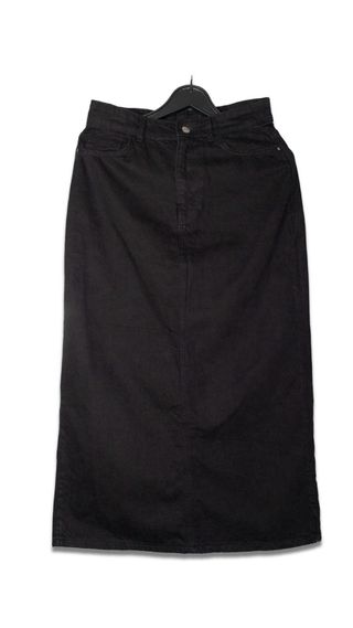 Falda midi de color negro con un diseño moderno y elegante. - Tejido cómodo y con caída. - Abertura lateral pronunciada. - Largo midi.