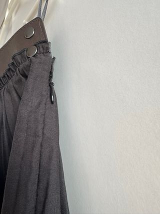 Falda corta con detalle de cuero en la cintura y falda plisada. NUEVA A ESTRENAR - Cintura elástica. - Tejido ligero y con movimiento. - Falda plisada doble capa. - Cierre de cremallera en la parte trasera.