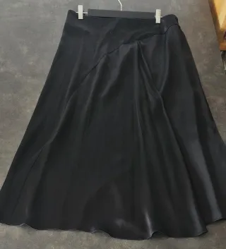 Elegante falda de Massimo Dutti confeccionada en raso. - Diseño asimétrico. - Corte acampanado. - Tacto suave y fluido.