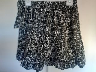 Falda pantalón en tejido de gasa,color negro con dibujos en blanco. Por delante hace efecto de falda pero es pantalón como se puede ver por detrás. Tiene volante y una lazada en el lateral y elástico en la cintura. Talla M/L. Poquito uso,en perfecto estado.