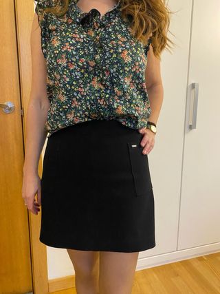 Falda corta de color negro de la marca Esprit. Precio por privado.