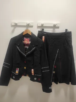 Conjunto de chaqueta y falda. Negro. Está arrugado de guardarlo en una caja, pero está en buenas condiciones
