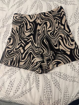 Falda pantalón con un llamativo estampado. - Diseño con remolinos en beige y negro. - Corte acampanado. - Tejido ligero.