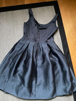 Elegante vestido de fiesta con un diseño moderno y favorecedor. Ideal para eventos especiales. - Tejido satinado con caída. - Cuerpo con pinzas para un mejor ajuste. - Falda con vuelo y pliegues.