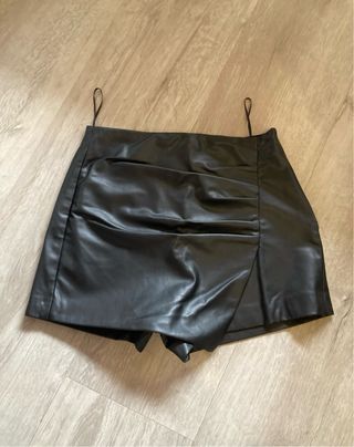 Falda pantalón de polipiel con un diseño moderno. - Cierre con cremallera. - Diseño cruzado. - a estrenar Medidas: • Cintura (ancho) 65 cm • Cadera (ancho) 69,5 cm