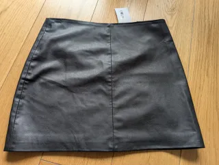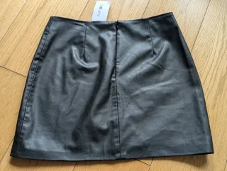 Falda de cuero con un diseño moderno y elegante. 30 cm en cintura y está algo corrida la cremallera para hacerla más ancha, aún así es muy estrecha y ya no me vale. - Material: Cuero - Color: Negro - Diseño con paneles cosidos