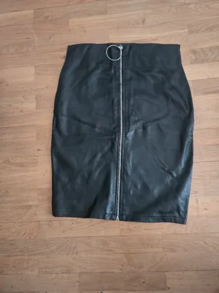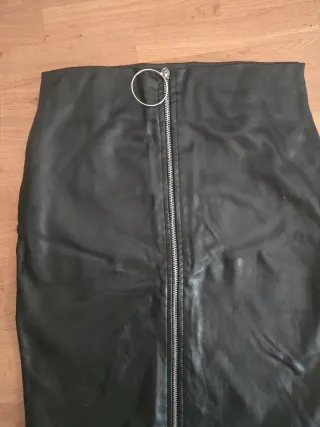 Falda negra efecto piel con cremallera