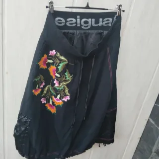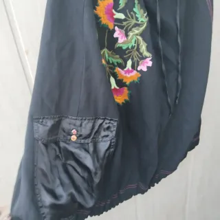 Falda negra con un llamativo bordado floral. - Diseño con estampado de flores. Cadera 53cm - Cintura elástica con logo.34cm - Detalles de satén en los bolsillos. - Costuras decorativas en contraste.