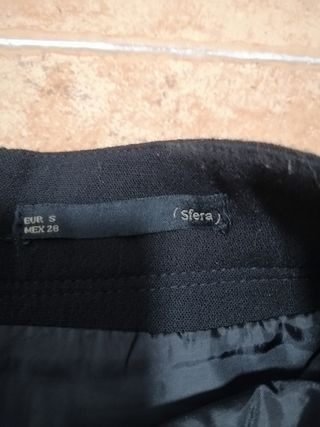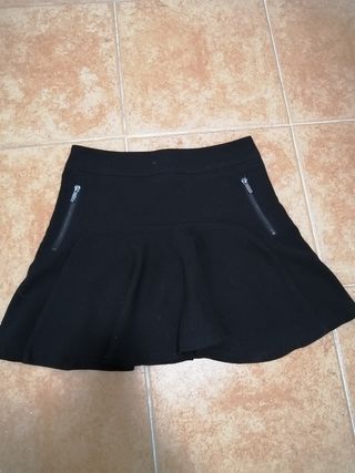 Falda negra, talla S, detalle de cremallera y volante central, muy poco uso. Medidas en la foto. Sin marca