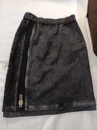 Falda de punto con detalles de encaje. - Diseño con panel lateral de encaje negro. - Adorno metálico en la parte frontal. - Cintura elástica.