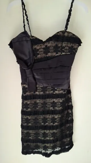 Vestido negro encaje y lazo