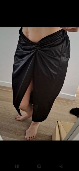 Falda negra brillante de Shein, talla 36. Con nudo frontal y pertura. Muy chula!!