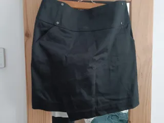 Pack de tres faldas de algodón. -Negra con cremalleras: T. L Es estrecha y corta. Largo 37 cm Ancho 42 cm -Marrón: T.M Estrecha Largo 40 cm Ancho 38 -Negra sin cremalleras: T.M Largo 35 cm Ancho 40 cm 5 € las tres Hago envíos