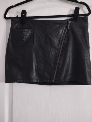 Falda de cuero sintético en color negro. Un básico versátil para cualquier armario. - Material: Cuero sintético.