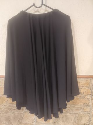 Falda corta de baile español en color negro. Su diseño es elegante y con mucho movimiento. - Tejido ligero y vaporoso. - Cintura elástica para mayor comodidad. - Corte asimétrico con volantes en el bajo. Conservatorio danza