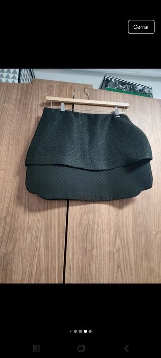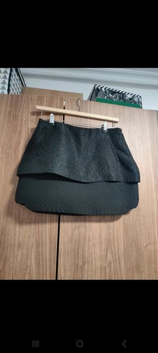 Conjunto de dos faldas negras. - Diseño con volantes. - Detalle de cremallera. - Bajo deshilachado. todas como nuevas, distintos adornos y distintos tejidos. si las quieres ver y probar, dile a tus amigas, primas, vecinas, con tu madre, padre, tías, las veis y probáis sin compromiso. una X 5€. y más de una X 4€. cada una y puedes elegir.
