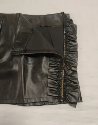 Minifalda con acabado de piel sintética. - Cremallera lateral. - Detalle de volantes. - Diseño moderno.