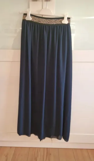 Preciosa falda larga de la marca Pull and Bear, talla M (equivalente a 38 o 10). Está en muy buen estado. - Color negro elegante. - Diseño fluido y favorecedor. - Tejido de raso suave.