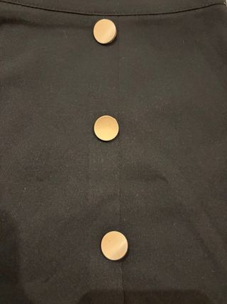 Falda midi negra, ideal para cualquier ocasión. Su diseño elegante la hace versátil. - Largo midi. - Abertura frontal. - Cierre de botón.