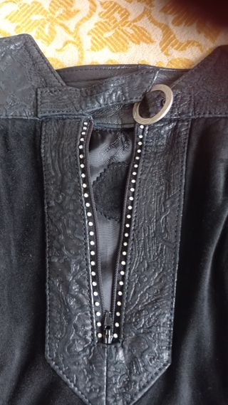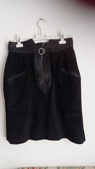 Preciosa falda de ante y cuero, ideal para cualquier ocasión. Es una prenda elegante y versátil. - Tiene una bonita textura. - La falda está en muy buen estado.