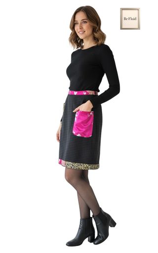 Falda tubo con un estampado geométrico discreto. La cintura es elástica para mayor comodidad. - Diseño de cuadros pequeños. - Cintura elástica negra.