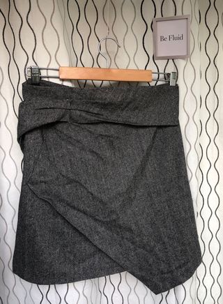 Falda con un diseño de espiga en tonos grises y negros. La tela tiene una textura interesante. - Diseño de espiga. - Tejido de tweed. 📍 También estoy en Vonted como queloliquido 📦 Envíos más baratos + opción de lotes con descuento 💬 Si te interesa algo, búscame allí o escríbeme sin compromiso