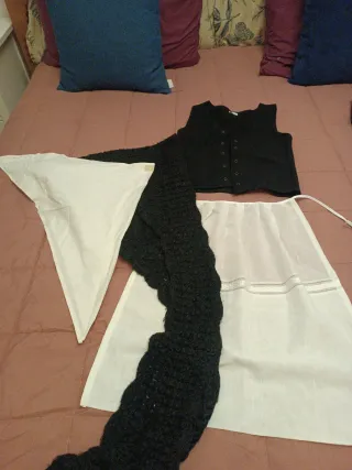 Conjunto de traje tradicional vasco. - Chaleco negro. - Falda blanca. - Bufanda negra.
