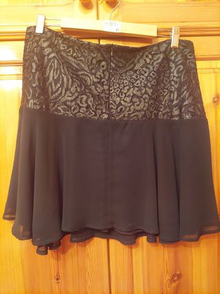 Bonita minifalda negra con flores. Con forro. Cierre con cremallera trasera. Se me ha quedado pequeña y me compré la S 😅