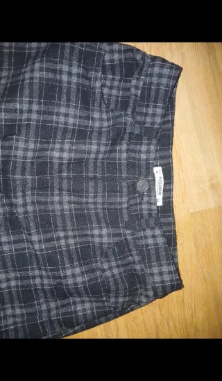 Falda de cuadros, ideal para el invierno. - Diseño a cuadros en tonos negros y grises. - Etiqueta de la marca visible.