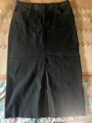Falda negra de corte midi. Es elegante y versátil, perfecta para cualquier ocasión. Talla 50