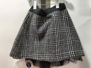 Falda con estampado de cuadros. - Diseño de cuadros. - Cintura elástica. - Detalle de tul en el bajo.