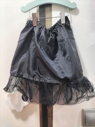Falda de vuelo capa negra hecha a medida. Cremallera lateral de cierre. Talla L-XL. Medidas aproximadas: Cintura: 39 cm Cadera: 52 cm Largo: 56 cm