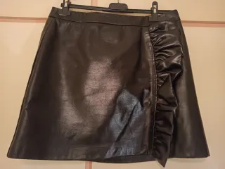Preciosa falda negra de polipiel con un diseño de ondas en el bajo. Es una prenda elegante y versátil, ideal para cualquier ocasión. - Talla L - Poliuretano