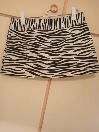 Minifalda con estampado animal print. - Diseño de cebra en blanco y negro. - Cintura alta. - Tejido tipo vaquero Sólo una puesta