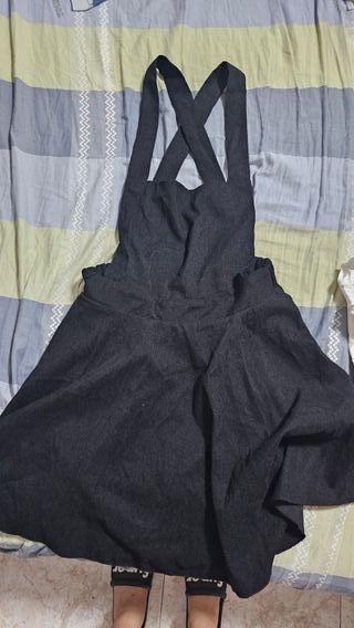 Falda negra con tirantes y tirabuzones