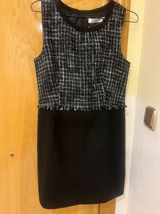 Vestido de la marca ANANY con un diseño elegante. - Parte superior con tejido tweed. - Detalle de flecos en la cintura. - Falda lisa en contraste.