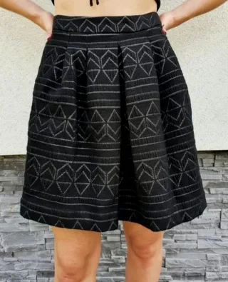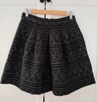 Falda con un diseño moderno y versátil. - Tejido con pequeños detalles brillantes. - Corte acampanado.