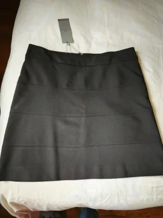 Perfecto estado, nueva. Color negro. Es muy elástica pero con tela fuerte (efecto moldeador). Diseño ceñido y tejido texturizado. Longitud por encima de la rodilla.
