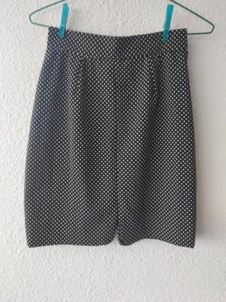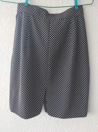 Falda corta con estampado de lunares. - Diseño de lunares blancos sobre fondo negro. - Corte clásico y versátil.