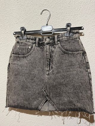 Falda vaquera corta con lavado desgastado. - Negro lavado, de tiro alto y corte recto. - Tejido denim resistente con acabado desgastado y bajo desflecado, muy en tendencia. - Cinco bolsillos y trabillas para cinturón. - Bajo deshilachado. Queda ideal tanto para looks casual como más cañeros: perfecta con medias estampadas, botas o zapatillas. Una falda básica pero con estilo, fácil de combinar y cómoda de llevar.