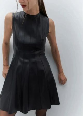 Vestido de polipiel con un diseño moderno y elegante. - Corte skater. - Detalle de costuras verticales en el cuerpo. - Falda con vuelo.