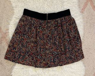 Falda de mujer con un bonito estampado. - Diseño con cintura elástica. - Tejido ligero y fluido. - Estampado paisley en tonos marrones, beige, negros y verdes.