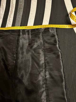 Usada una vez. Larga por encima a de la rodilla. Exactamente igual por los dos lados. Negra y planteado de dos tonalidades.