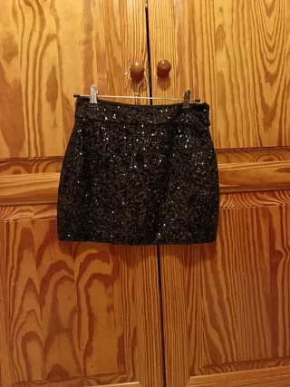 Falda corta con lentejuelas brillantes. - Diseño con lentejuelas. - Estilo moderno.