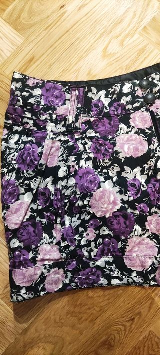 Minifalda floral negra y morada