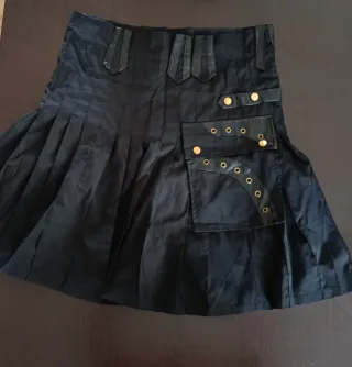 Falda de estilo vikingo o celta, con un diseño único y llamativo. Para hombre y mujer. - Detalle de pliegues. - Adornos metálicos y efecto cuero. - Bolsillo frontal decorativo.
