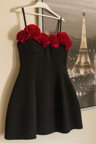 Vestido negro con rosas rojas