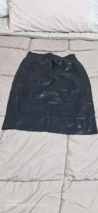 Falda de cuero con un diseño moderno y elegante. - Material: Cuero - Color: Negro